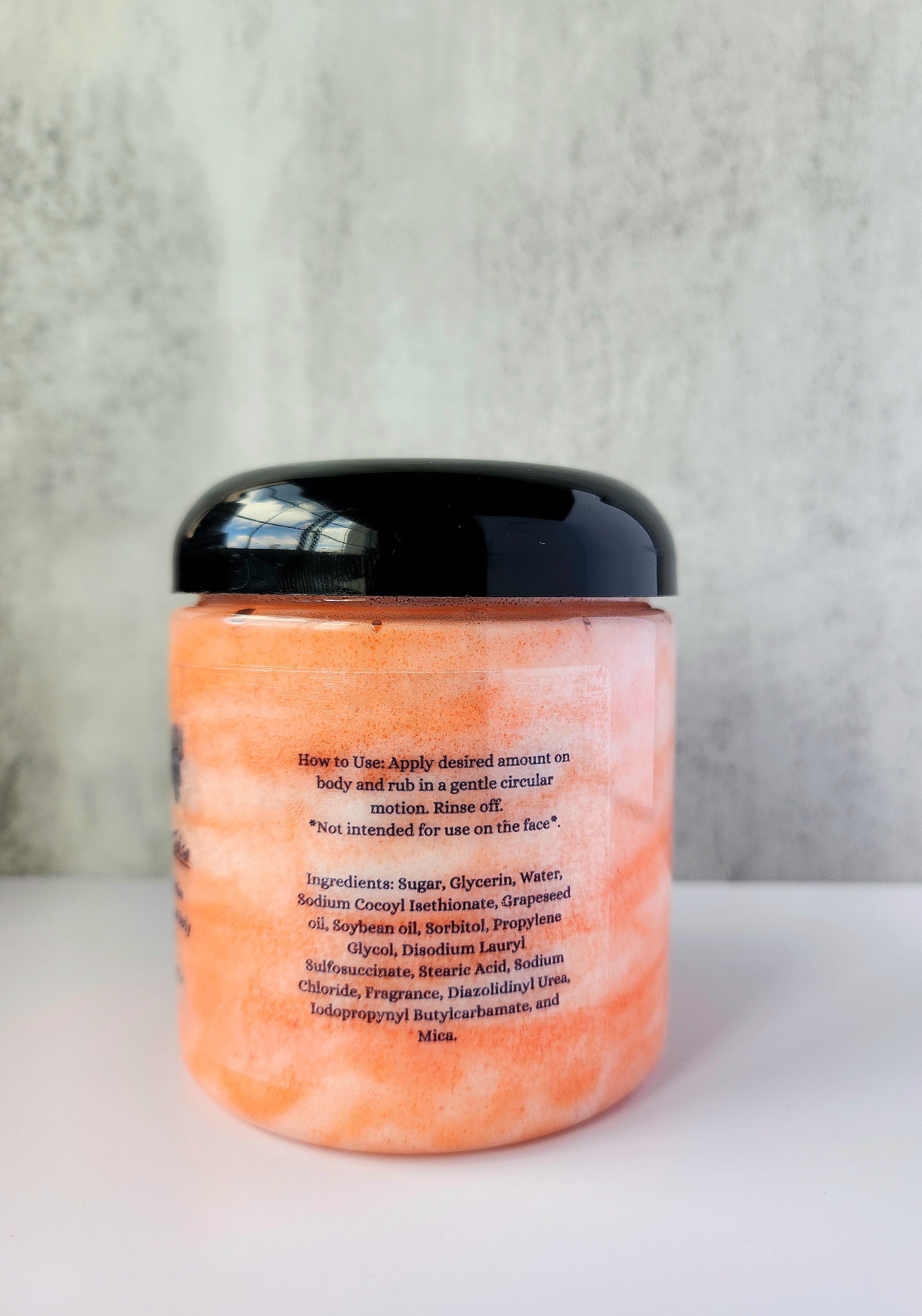 Ingredients: Sugar, Glycerin, Water, Sodium Cocyl Isethionate, Sorbitol, Propylene Glycol, Soybean oil, Grapeseed oil, Disodium Lauryl Sulfosuccinate, Stearic Acid, Sodium Chloride, Pheonip (Preservative), Fragrance, and Cosmetic Mica.